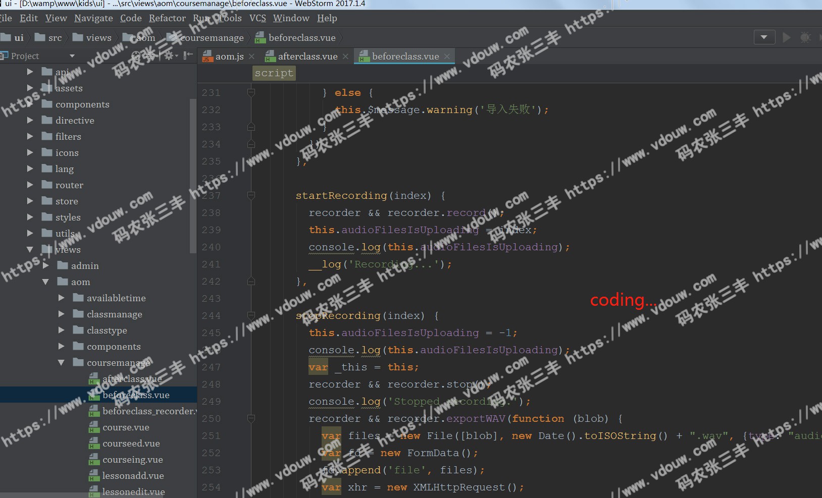 此项目是我在Proudkids的工作核心,同时也是公司整体运作的管理后台,角色包括中教外教、销售(总经理、大区经理、组长、组员)管理员、班主任、财务、各级渠道等。技术选型是Vue全家桶,结合Router路由配置访问权限,结合axios和Promise编写统一的接口Request拦截器,使用Vuex和Cookie实现项目的状态存储。