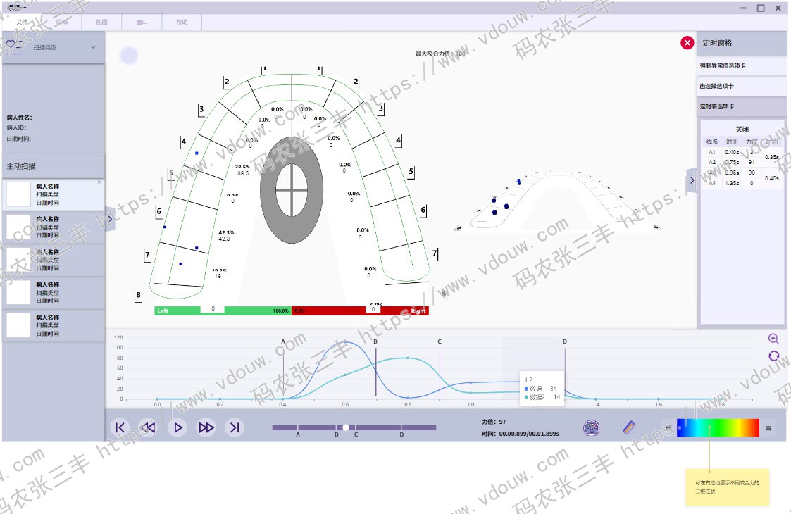 可视化窗口:作为主显示区,动态呈现患者咬合压力在2D/3D视角下的时空变化。