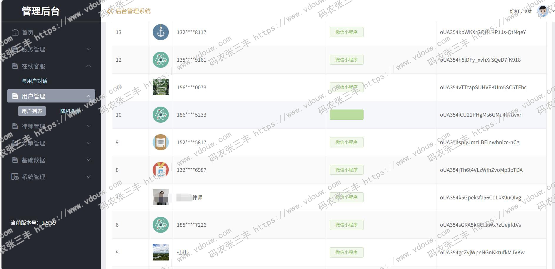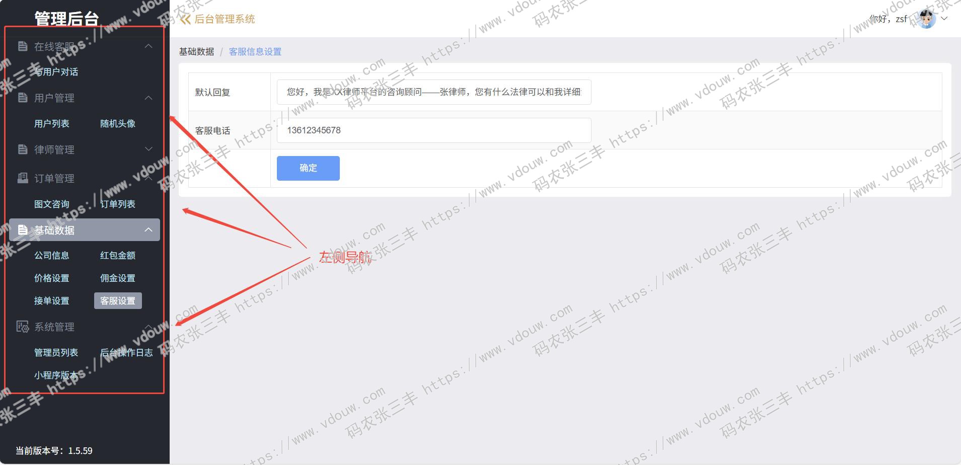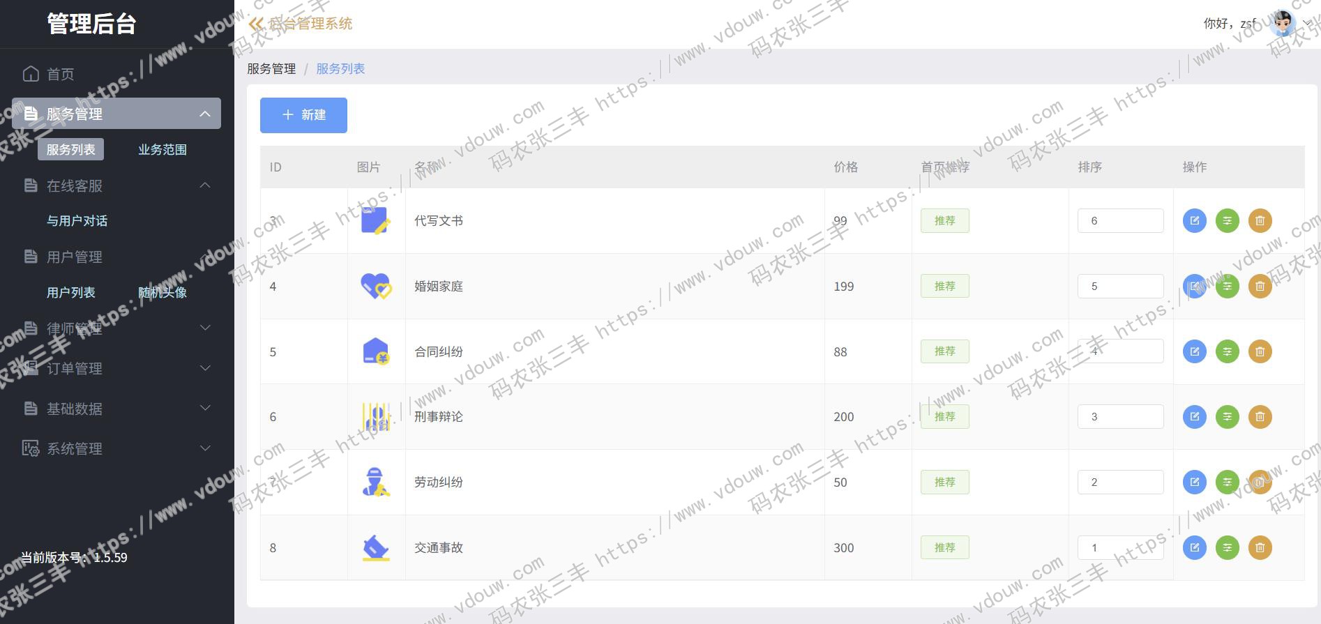 2)律师可以在对话系统中,可以向用户推送自定义服务项目