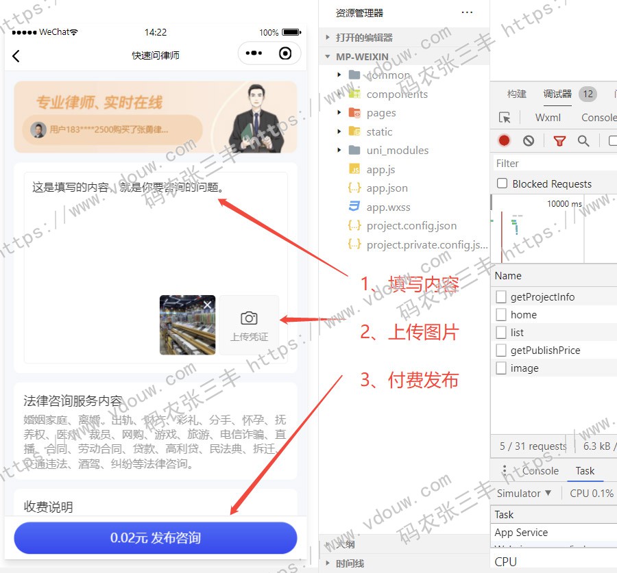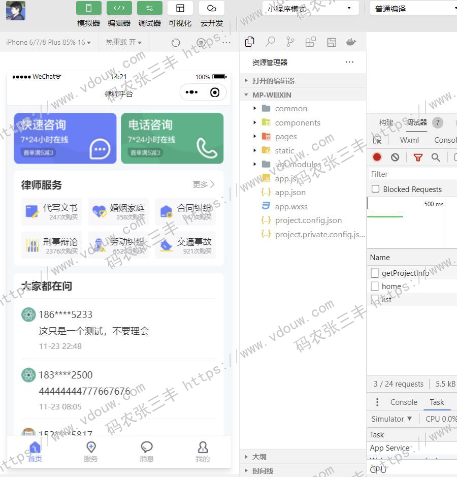 我曾经参与的“律师帮帮”在线法律平台,我负责前端方面的工作。