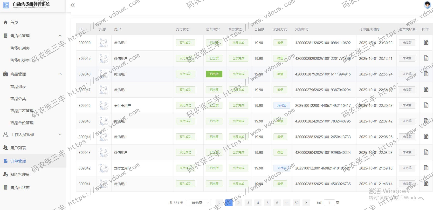 先展示该项目一天的订单
